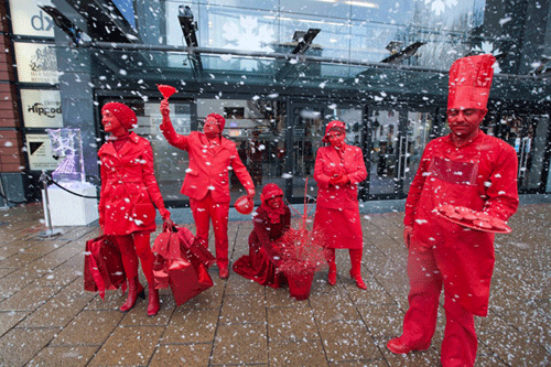 Christmas "REDS" @ Birmingham Hippodrome Following on from this year's Six Summer Saturdays 'The Reds' make a return by popular demand as they spread their love, magical gifts and seasonal cheer in Southside and Birmingham Hippodrome spaces on December 15th, 16th and 23rd. "Heartfelt" "Heartfelt" was performed as part of World Aids day at mac in Birmingham on December 1st in conjunction with The "Make Your Mark" Project. "REDS" Natural Theatre www.facebook.com/birminghamhippodrome www.facebook.com/naturaltheatreco Birmingham Hippodrome as part of 'Six Summer Saturdays 2012' and in collaboration with "Natural Theatre" offered an unique professional development performance opportunity. Ten regional practitioners worked with Natural Theatre to develop their own 'RED' character which was added to the performance of "REDS" with the company on August 11th in Birmingham City Centre.