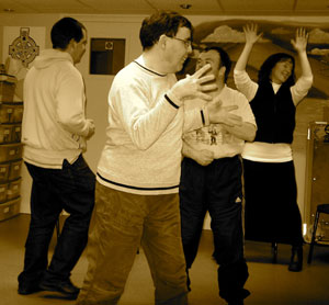 "Ceci n'est pas ... North Wales Autumn 2009 - Spring 2010 "Moving and Being" North Wales Autumn 2009 - Spring 2010 Jane worked with groups of adults with learning disabilities in Ruthin and Prestatyn to devise and direct which explored the Cinderella myth. See Cinders step into her golden shoes and go to the Ball.