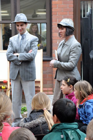 "Down To Earth" Tom & Tam Toboldligo March 2011 Photo: Kate Buttolph a performance project for Black Country Creative Partnerships. Jane worked with Alex Nikitas to create and perform this work. The aim of which was to inspire and develop writing and performance skills in Market Drayton Junior School, Shropshire. "Ceci n'est pas ..." is a performance Jane did at The Midlands Arts centre as part of the launch of the "SHOUT" Festival on 4th November 2010. This work was inspired by her visit to The Magritte Museum in Brussels earlier this year.